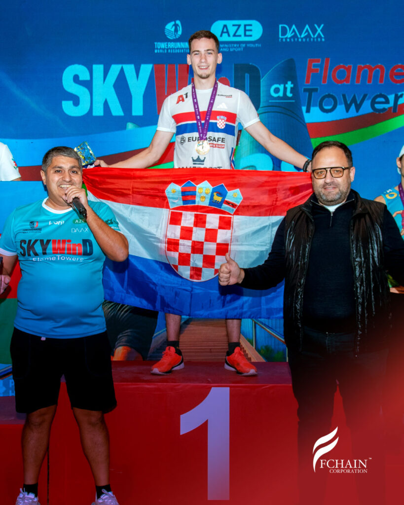 The race required participants to run up to the 32nd final floor of the Flame Towers, covering a vertical height of 160 meters. Alongside local and international professional athletes in the PRO category from Spain, Slovakia, Romania and Croatia, the FCHAIN team also took part in this exciting competition, completed the distance and earned a participant medal.
